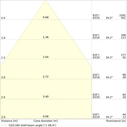 ![]() The colour code is a combination of colour rendering (CRI) and light colour (Kelvin). The first number indicates the colour rendering (1 = very poor colour rendering, 9 = maximum colour fastness). The second and third number contains the light colour. Example: the colour code 830 consists of good colour rendering (8) and warm white light (3000K). |