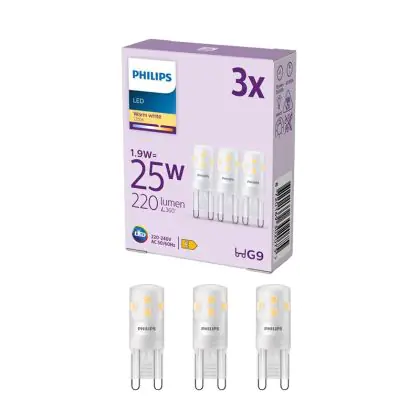 Multipack 3x Philips LED Capsule G9 Frosted 1.9W 220lm - 827 Extra Warm White