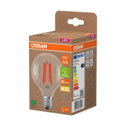 Osram LED Lamps E27 Globe Filament Clear 2.2W 470lm - 827 Extra Warm White | Replaces 40W