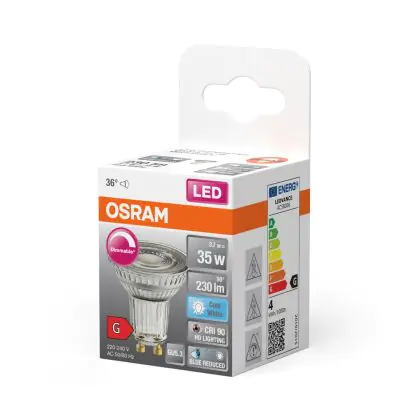 Osram LED Superstar Reflector Spot GU10 PAR16 3.7W 230lm 36D - 940 Cool White | Best Colour Rendering - Dimmable - Replaces 35W