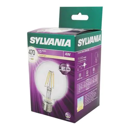 Sylvania Retro ToLEDo E27 Globe 80mm Filament Clear 4W 470lm - 827 Extra Warm White | Replaces 40W